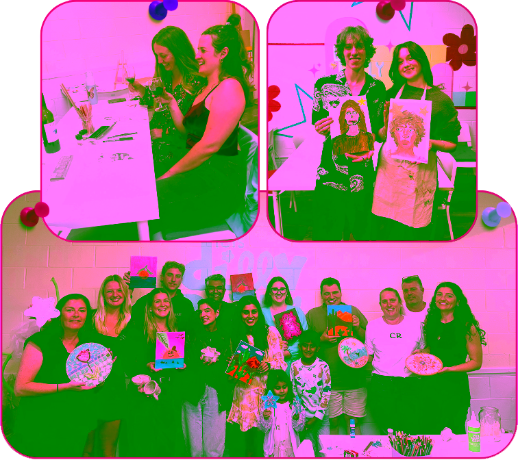 Our workshops are intentionally priced to be accessible — so anyone can make, play, and connect without worrying about the cost. We’re here to make art time feel good and fit your budget.