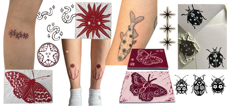 The $195 option includes the lino print class + a tattoo starting from $150 (up to 10cm).