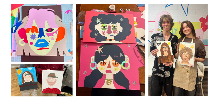 - Collage Portraits, cutting and layering coloured paper shapes to create a bold, playful portrait